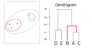 - ์(leaf)์ผ๋ก๋ถํฐ ๋ชธํต(trunk)๊น์ง ํด๋ฌ์คํฐ๋ฅผ ํฉ์ณ ๋๊ฐ๋ฉฐ ์ญํธ๋ฆฌ(dendrogram)๋ฅผ ์์ฑ