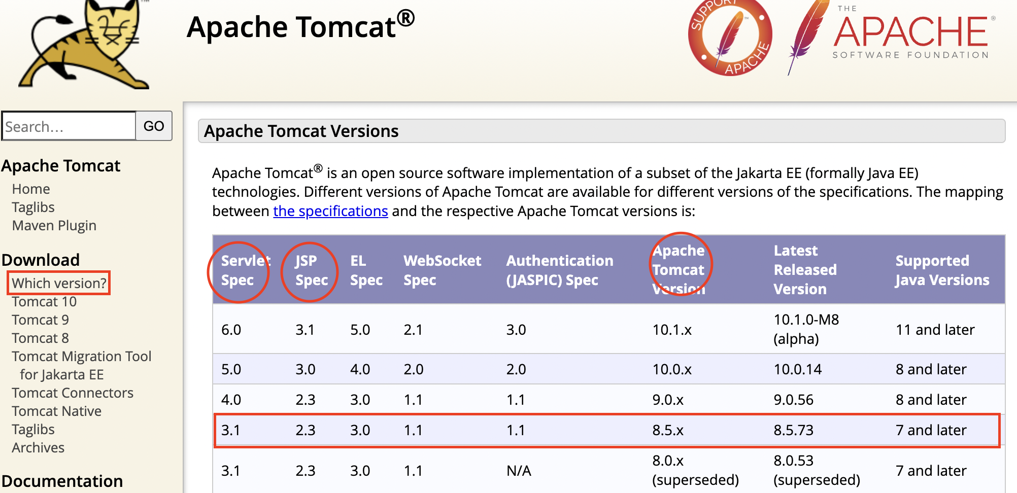https://tomcat.apache.org/whichversion.html